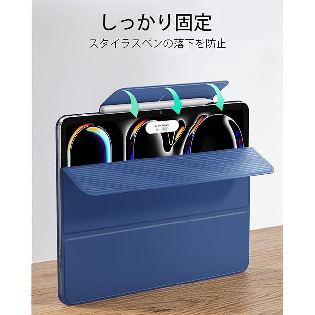 商品名:ESR iPad Pro 13インチ ケース(M5/M4、2025/2024) 専用 強力マグネット吸着式 スリムな三つ折りスタンドケース オートスリープ/ウェイク機能 Pencil Pro/USB-C完全対応 耐久性保護 Reboundシリーズ ブルー