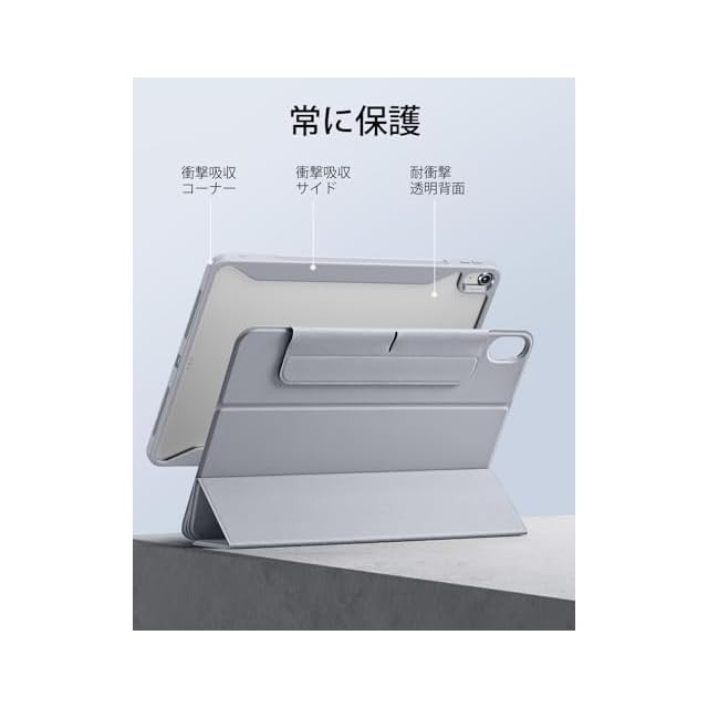 商品名:ESR iPad Air 13インチ ケース (2025/2024、M3/M2) 専用 Pencilホルダー付き 取り外し可能マグネットカバー 縦置き/横置きスタンド Pencil Pro/USB-C完全対応 Rebound 360シリーズ グレー