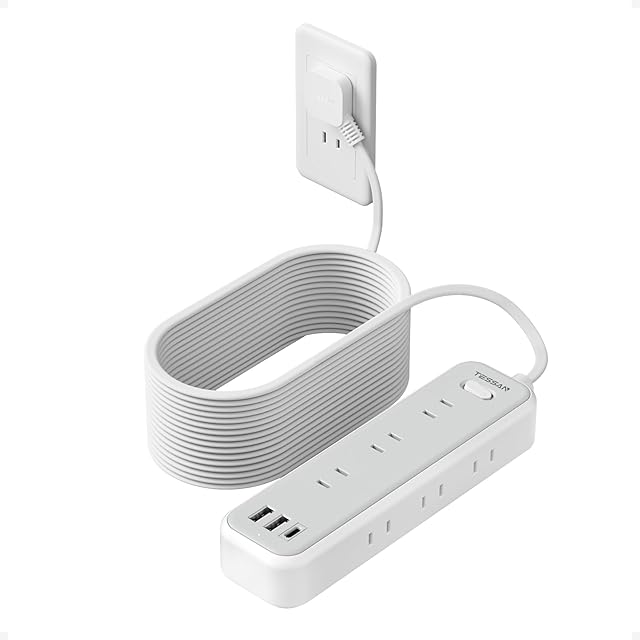 延長コード 10m 電源タップ 薄型プラグ usb たこあしコンセント テーブルタップ TESSAN 9個AC口 2個type-Aポート 1個USB-Cポート電源コード OA タコ足配線 マルチ 一括スイッチ付き 壁掛け 卓上