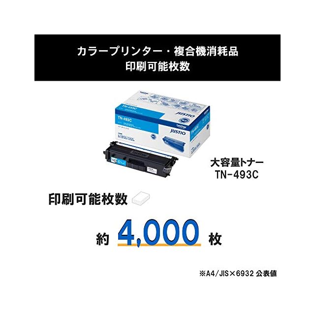 商品名:ブラザー工業 【brother純正】トナーカートリッジシアン(大容量) TN-493C 対応型番:HL-L9310CDW、HL-L8360CDW、MFC-L9570CDW、MFC-L8610CDW 他
