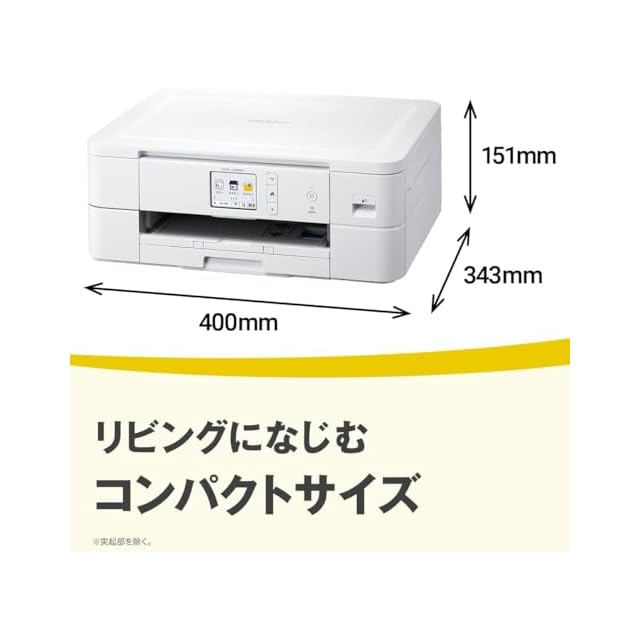 大きさ:W400×D343×H151mm(突起部を除く)、質量:約6.8kg(インクカートリッジ含む)、インク色数:4色独立、用紙トレイ:最大100枚/排紙トレイ:最大50枚(普通紙:用紙厚さ0.08mm~0.15mm)、印刷対応用紙サイズ:L判~A4
