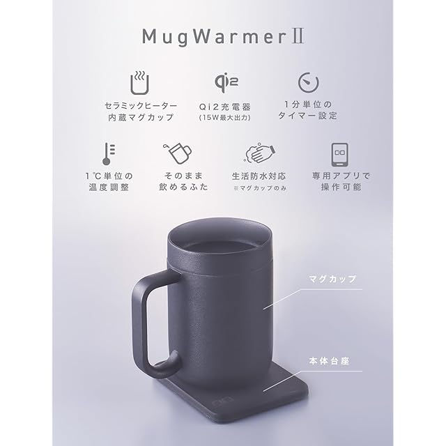 商品名:CIO マグウォーマー2 カップウォーマー と Qi2 ワイヤレス充電器 の1台2役 付属のヒーター内蔵 専用 保温マグカップ を 40 ~ 70℃ で保温 1℃単位 調整 アプリで設定をカスタマイズ 最大8時間連続保温 最大3つ設定保存 USB ケーブル付属 20W 充電器別売り コーヒー 紅茶 お茶 白湯 保温コースター PCデスク プレゼント にも最適 iOS Android
