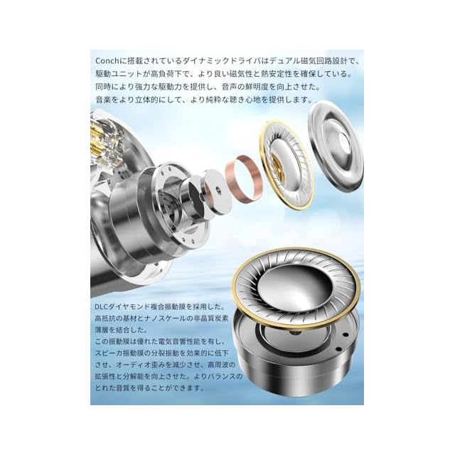 商品名:TRN-CONCH モニターイヤホン カナル型 イヤホン DLCダイヤモンド炭素振動膜 1DD イヤモニ イヤーモニター 高遮音性 IEM ハイレゾ イヤフォン 中華イヤホン 有線 2.5/3.5/4.4mm交換式プラグ QDC脱着式ケーブル (CONCHシルバー)
