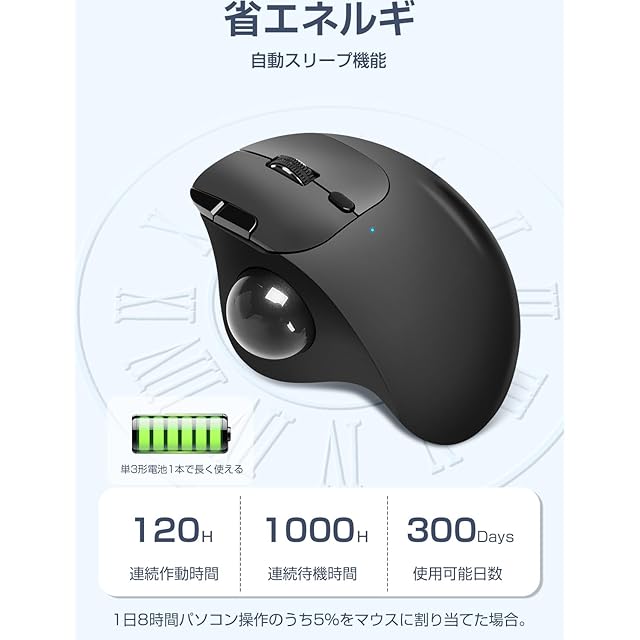 商品名:Ewin トラックボールマウス Bluetooth&2.4GHz両対応 3台同時接続 トラックボール 【NEWモデル】 ワイヤレス 親指 静音タイプ 高精度 エルゴノミクス 瞬時接続 無線マウス 7ボタン 進む/戻るボタン Windows/Mac/iOS/Android多機種対応 (グレー)