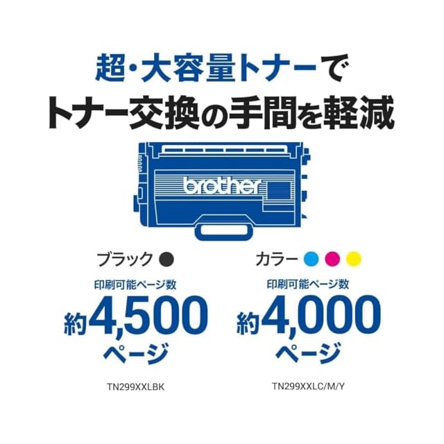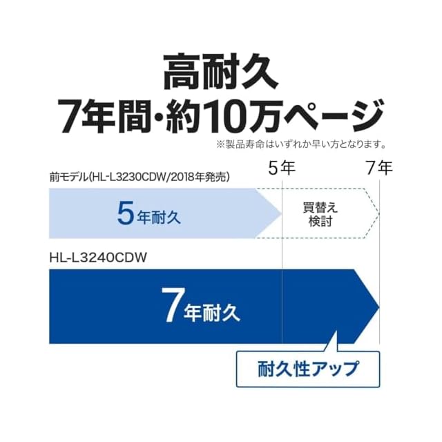 プリント速度(片面):カラー・モノクロ約26枚/分。製品寿命:約10万ページまたは7年のいずれか早い方