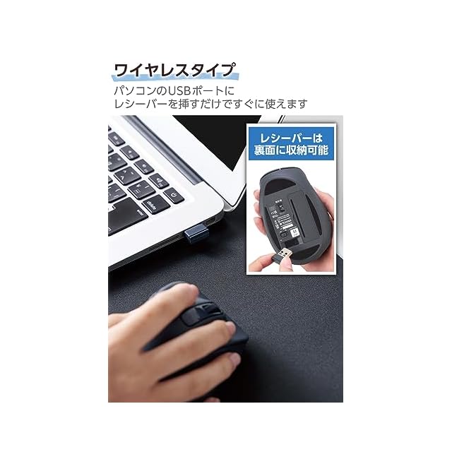 商品名:エレコム マウス ワイヤレスマウス EX-G 無線2.4GHz 静音 Mサイズ 5ボタン 「AskDoctors評価サービス」認証 抗菌 ブラック M-XGM30DBSKABK