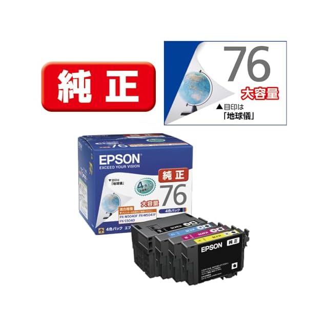 商品名:エプソン 純正 インクカートリッジ 地球儀 IC4CL76 4色パック 大容量 イエロー、シアン、ブラック、マゼンタ