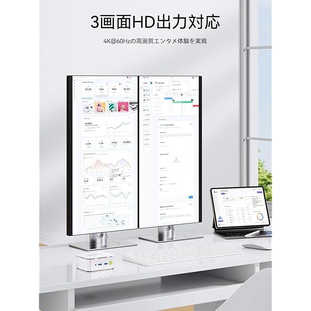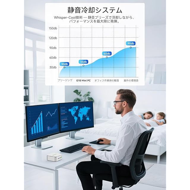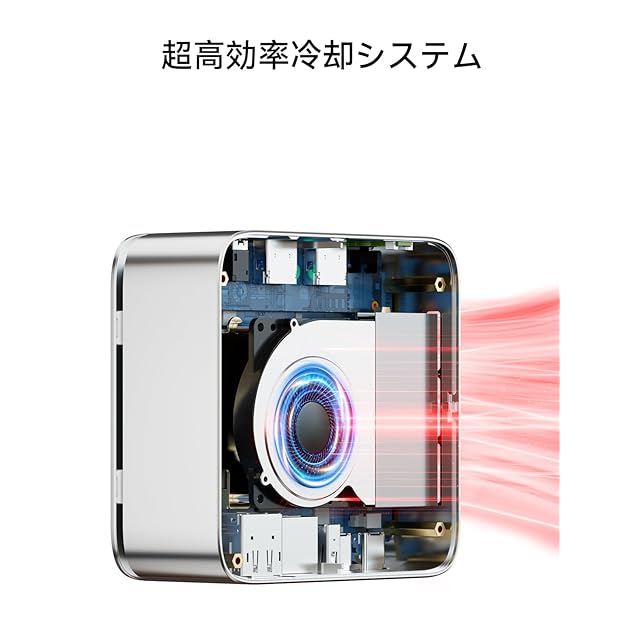 【静音&省スペース設計|手のひらサイズ】わずか手のひらサイズの筐体に冷却ファンを内蔵。静音性と放熱性を両立し、オフィスや図書館などでも安心して使用可能。VESAマウント対応で設置自由度も高く、在宅ワークやビジネス利用に最適な1台です。103*98*42mm