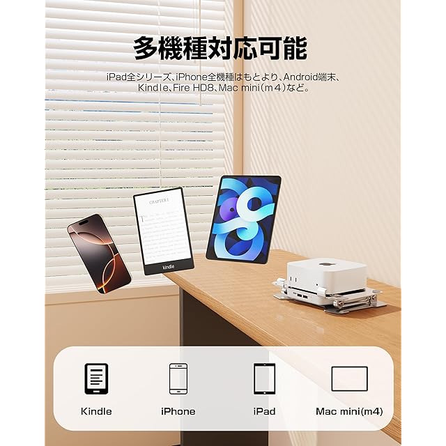 商品名:タブレット 冷却スタンド iPad 冷却ファン アルミ合金製 mac mini(m4)冷却台 四つファン付き 2つUSBポート付き 折りたたみ 低騒音 角度調整 人間工学設計 姿勢改善 滑り止め付き ゲーム/絵描き用 iPad Pro,mini,Air 7.9-13インチタブレット対応