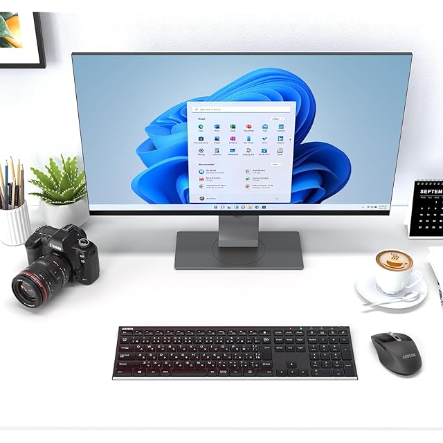 Arteck 2.4G無線ワイヤレス キーボード マウス セット 軽量 薄型 Type-C 充電式 フルサイズ キーボード マウス コンピューター、デスクトップ、PC、ラップトップ、Windows 11/10/8/7との交換性あり