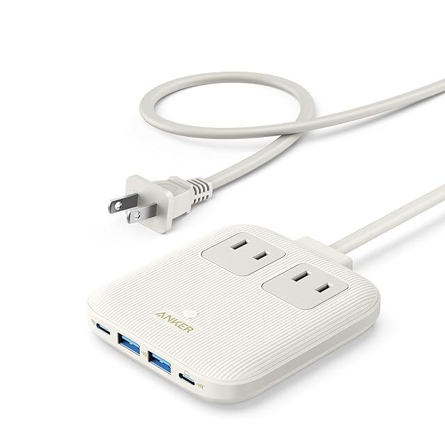 Anker Nano Charging Station (6-in-1, 67W) (USBタップ 電源タップ AC差込口 2口 USB-C 2ポート USB-A 2ポート 延長コード 1.5m) 【PSE技術基準適合】MacBook PD対応 Windows PC iPad iPhone Galaxy Android スマートフォン ノートPC 各種 その他機器対応 (ホワイト)