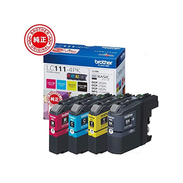 商品名:ブラザー工業 【brother純正】インクカートリッジ4色パック LC111-4PK 対応型番:MFC-J877N、MFC-J727D/DW、DCP-J957N、DCP-J557N 他
