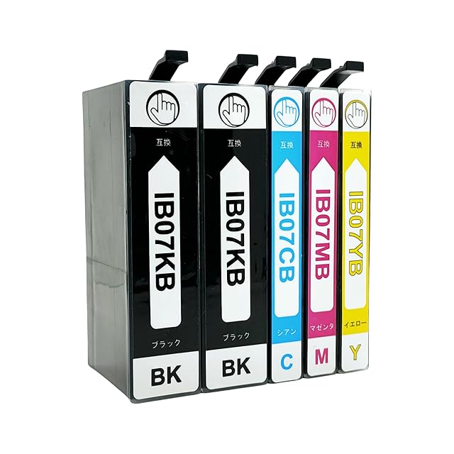 【個別包装】パッケージ内容:インク5本。ブラック(IB07KB)2本・シアン(IB07CB)1本・マゼンター(IB07MB)1本・イエロー(IB07YB)1本合計5本パック。(全て染料)