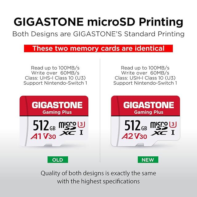【5年】GIGASTONE マイクロsdカード 512GB Gaming Plus microSDXC UHS-I A1 V30 U3 C10 100MB/s 高速 Full HD & 4K UHD動画 GIGASTONE 国内正規品 SDアダプター1枚付き【Nintendo Switch 1動作確認済】
