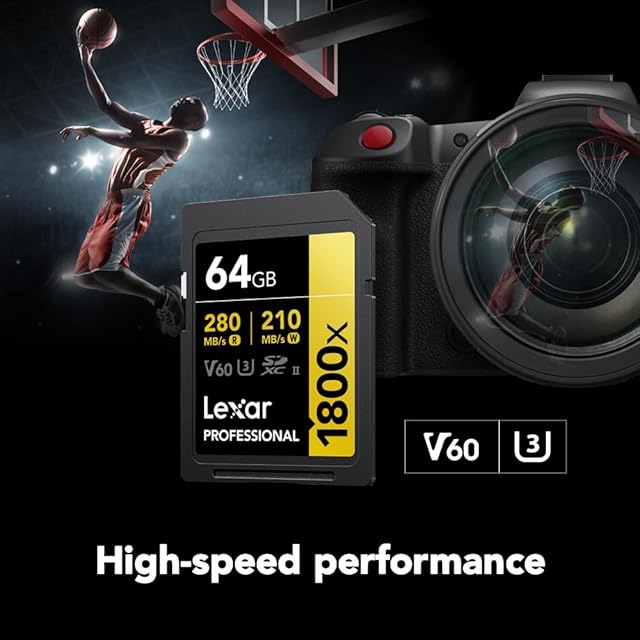 Lexar SDカード Professional 1800x SDXCカード 最大読込280MB/秒 書込210MB/秒 UHS-II Class 10 U3 V60 4K Ultra HD 動画撮影 国内正規品 (64GB) LSD1800064G-BNNNG