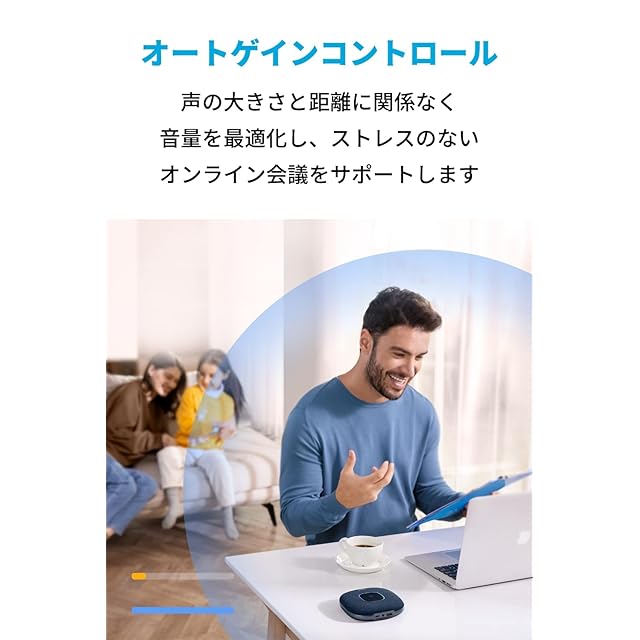 オートゲインコントロール:声の大きさとPowerConf S3までの距離に関係なく音量を最適化します。相手側に均一な音量で声を届け、ストレスのないオンライン会議をサポートします。