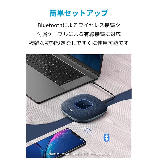 商品名:Anker PowerConf S3 スピーカーフォン 会議用 マイク Bluetooth 対応 24時間連続使用 グループモード対応 USB-C接続 オンライン会議 テレワーク 在宅 会議用システム ウェブ会議 テレビ会議 ビデオ会議(ネイビー:ファブリック)