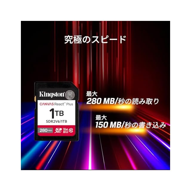 UHS-II 撮影の愛好家向けに設計された Kingston の Canvas React Plus V60 SD カードは、非常に優れたパフォーマンスを発揮し、UHS-I よりも高い毎秒ごとのフレーム数(fps)で 4K 撮影を行う標準の UHS-II カメラに理想的です。<br> <br> ■ 最大 280MB/秒までの転送速度を実現<br> ■ 高性能 UHS-II スピードクラス 3 (U3) とビデオスピードクラス 60 (V60) 規格により、信頼性の高い高解像度の写真やビデオ撮影が可能<br> ■ 最大 1TB までの大容量ストレージで、デジタルコンテンツライブラリを保存できる<br> ■ メーカーより製品寿命期間をご提供します。<br>
