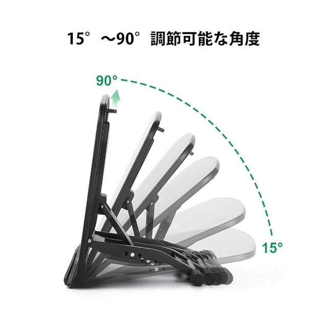 調節可能な角度:15°〜90°無段階で傾斜が変えられる 傾斜調整のやり方もシンプルで、とくに力を入れる必要はない