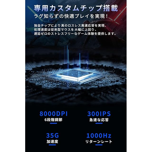 【8000DPIのセンサーが高繊細かつ高精度を実現】8000 DPIのセンサーが1対1での完璧なトラッキングを実現。 近距離での対面プレイなど即時のアクションを求められるシーンでも、精密かつ正確な操作が可能となり、勝利をサポートしてくれる。