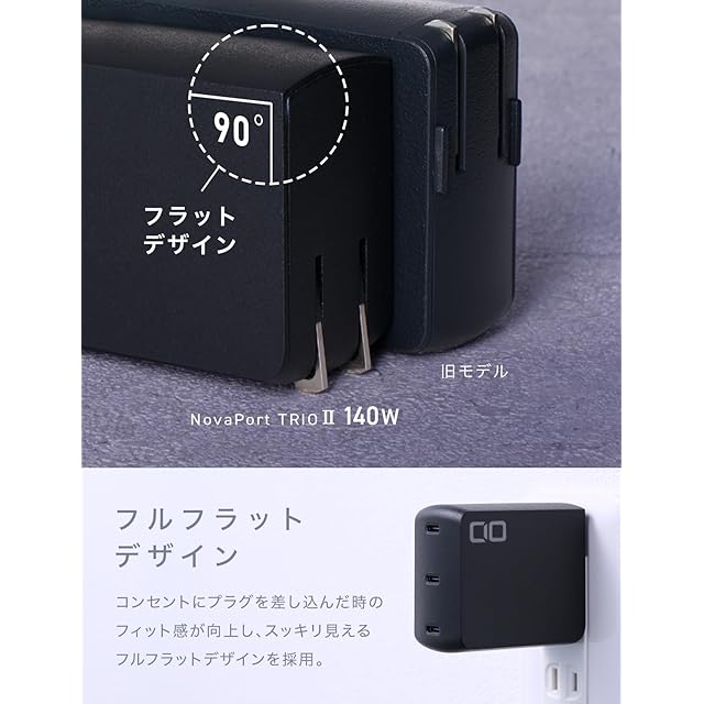 商品名:CIO NovaPort TRIOⅡ 140W PD3.1 3ポート 急速充電器 [世界最小級 CIO独自技術 NovaIntelligence NovaEngine搭載] USB-C×3 ACアダプター コンセント 軽量 Macbook Pro Windows iPhone 17 / Air / 16 / 15 Android Galaxy iPad ノートPC (ブラック)