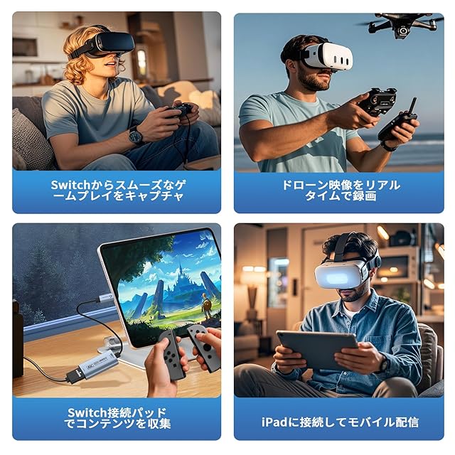 【ストリーミングシナリオ全体で幅広いデバイスサポート】iPad、MacBook、Switch/Switch 2、PS3/4/5、Xbox One、DSLR、ウェブカメラ、Quest 3/3s、TV Box、HDTV、DVDとシームレスに動作します。 この4K@60HzHDMIキャプチャカードは、スムーズなゲームキャプチャ、バーチャルミーティング、オンライン会議、ライブストリーミング、ライブイベント、オンライン教育、スタジオ制作を可能にします。