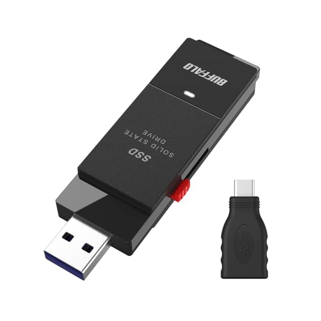 バッファロー SSD 外付け 2.0TB USB3.2 Gen2 読込速度600MB/秒 PS5/PS4メーカー動作確認済 コンパクト 小型 Type-Cアダプター付属 ブラック 【 iPhone 17 / 17 pro 動作確認済み 】 SSD-SCT2.0U3BA/N