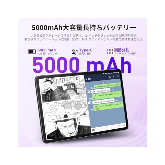 【Wi-Fi 6・Bluetooth 5.4・無線投影機能・5000mAh大容量バッテリー対応】2.4GHz/5GHzデュアルバンドWi-Fiに対応し、通信が安定しています。動画ストリーミングやオンラインゲームのラグを大幅に軽減し、混雑したWi-Fi環境でも接続が切れにくい特徴があります。Bluetooth 5.4技術を搭載しており、ワイヤレスイヤホンやキーボード、スピーカー、ゲームコントローラーを簡単に接続可能。音楽鑑賞や入力作業の効率向上をサポートします。無線投影機能も備えており、ケーブル不要でテレビやモニターに画面を簡単ミラーリング。会議や動画鑑賞がより便利になります。5000mAhの大容量バッテリーとインテリジェントバッテリー保護機能を同時に搭載。ウェブ閲覧は最大11時間、動画再生は最大5時間のバッテリー持続時間を実現し、通勤時や長時間のオンライン授業でもバッテリー切れの心配がありません。この多機能タブレットは日常のニーズを満たすだけでなく、エンターテインメントとビジネスシーンにおける理想的な選択肢です。