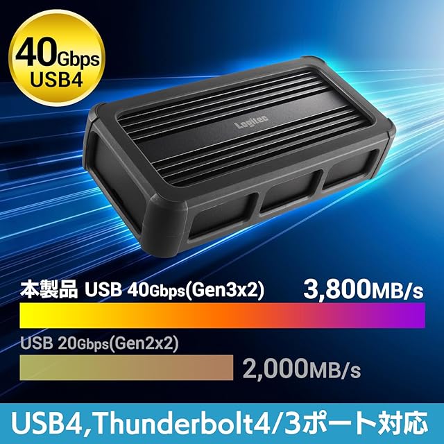 商品名:ロジテックダイレクト USB 4 SSD ケース 外付け M.2 NVMe 読込3,800MB/s M-Key B&M-Key 2280 / 2260 / 2242 / 2230 Type-C PCIe Gen3×2/Gen4 トンネリング 40Gbps Thunderbolt 3/4 放熱 アルミニウムボディ 4TBまで PS5 PS5Pro Mac iPad Pro LHR-LPNVWU4CD