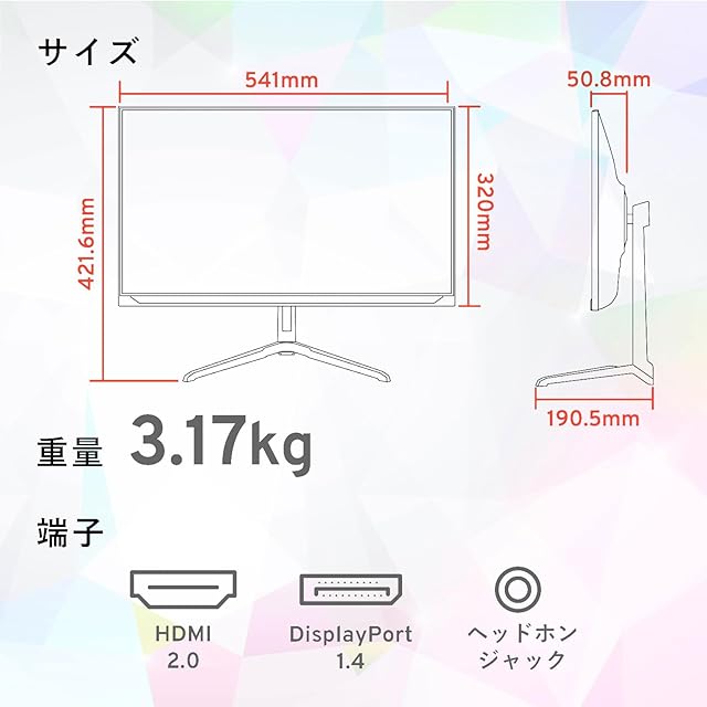 [機能] AMD FreeSync Premium / G-SYNC compatible / Flicker Free / VESAマウント(75mm) / ブルーライトカット / Overdrive / Black Equalizer / スピーカー内蔵(3W ×2)
