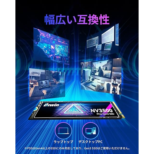 【Biwin NV3500】Biwin NV3500はPCIe 3.0 SSDの限界性能に挑戦し、高性能コントローラと厳選された高品質フラッシュメモリを搭載しており、シーケンシャル読込速度は最大3500MB/sに達します。標準的なM.2 2280片面設計を採用したNV3500は、PS5/PS5 Pro、デスクトップPC、ノートPCにも幅広く対応可能。