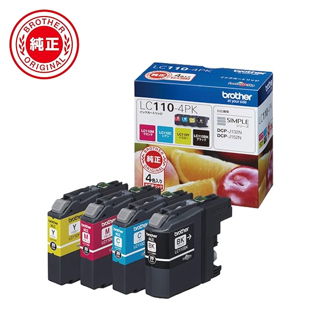 商品名:【brother純正】インクカートリッジ4色パック LC110-4PK 対応型番:DCP-J152N、DCP-J137N、DCP-J132N 他