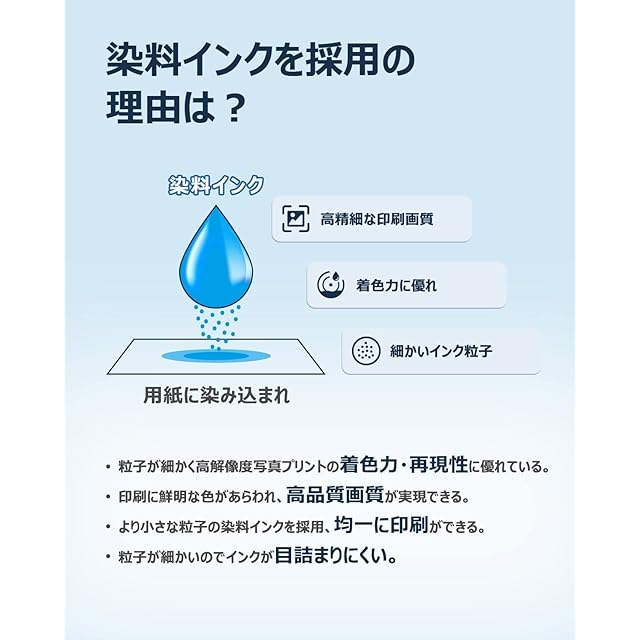 ★【染料を採用】弊社の LC3111-4PK 互換インクは染料インクを採用しています。染料インクとは、拡散係数が低いため、飽和度が高く鮮明な印刷効果を再現します。また、その表面張力特性により、用紙の表面にインクが吸収されやすいため、印刷品は光沢の維持が可能になります。