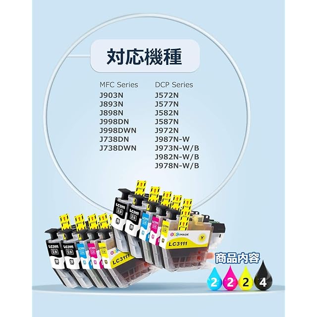★【対応機種】:ブラザー 用 インク lc3111 互換インクはDCP-J587N DCP-J987N-W DCP-J582N DCP-J982N-W/B DCP-J978N-W/B DCP-J972N DCP-J973N-W/B DCP-J572N DCP-J577N MFC-J903N MFC-J893N MFC-J898N MFC-J998DN MFC-J998DWN MFC-J738DN MFC-J738DWNのプリンターにご対応いたします。