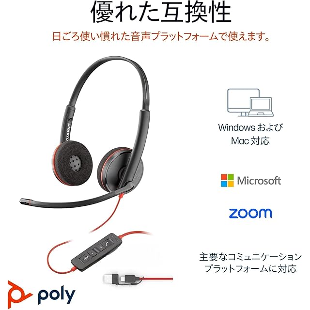 商品名:【2025年モデル】 Poly Blackwire 3220 両耳ヘッドセット 有線 ノイズキャンセリング USB-C/A 国内正規品 エコパッケージ 8X228A6AM