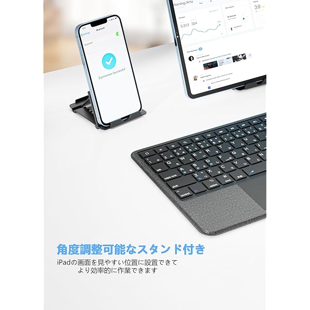 【コンパクトで持ち運び便利&なスタンド付き】mac キーボードは幅28cmとコンパクトで、重さも約230gと軽量なので、カバンやポケットに収納しやすく、持ち運びに便利です。ipad air キーボードは6段階の角度調整スタンドもついて、iPad・iPhoneを固定できて画面が見やすくなるので、より効率的に作業できます。