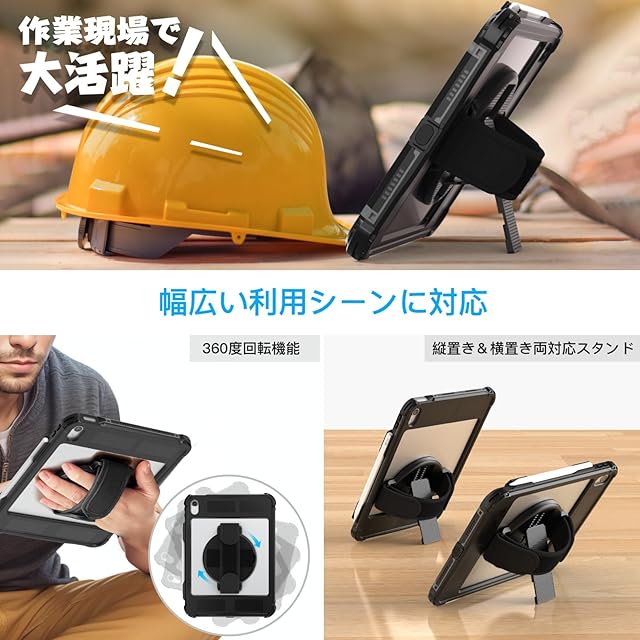 ✅【360°回転スタンド&肩掛けストラップ付】映画鑑賞、絵描き、ゲーム、仕事など幅広い用途で縦置き&横置きを自由に調節し、楽な姿勢でiPadを楽しめます。また、ハンドストラップ&ショルダーストラップは遊び、旅行中、作業現場などにハンズフリーになります。※【品質】万が一製品に不具合がある場合、注文履歴画面より出品者にご連絡いただき、お問い合わせ内容に応じて、交換などの対応が可能です。