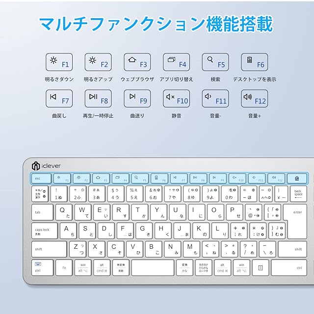商品名:iClever Bluetooth ワイヤレス キーボード 日本語配列 フルサイズ マルチペアリング Type-C充電式 122h長時間稼働 パンタグラフ式 テンキー付き OS自動識別 日本語説明書付き Windows/iOS/Mac/Android 対応 IC-BK31 (シルバーホワイト)