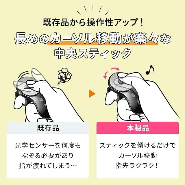 人差し指に リング を装着し、親指でカーソルセンサーを操作できる フィンガー マウス です。