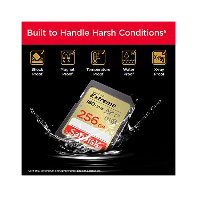 SanDiskのQuickFlow Technology(クイックフローテクノロジー)による最高180MB/秒の速度で、カードからのオフロード時間を短縮できます。(最高180MB秒の読み取り。 UHS-I 104MB/秒以上の速度に達する独自の技術を搭載。そのような速度で使用できる互換性のあるデバイスが必要です。 内部試験に基づいています。ホストデバイス、インターフェース、使用状況などの要因によってパフォーマンスが低下する場合があります。 1MB (メガバイト) =100万バイト。 SanDisk QuickFlowテクノロジーは、64GB、128GB、256GB、512GBの容量のみで利用できます。 1GB (ギガバイト) = 10億バイト。 実際にユーザーが使用できるストレージ容量はこれより少なくなります。)