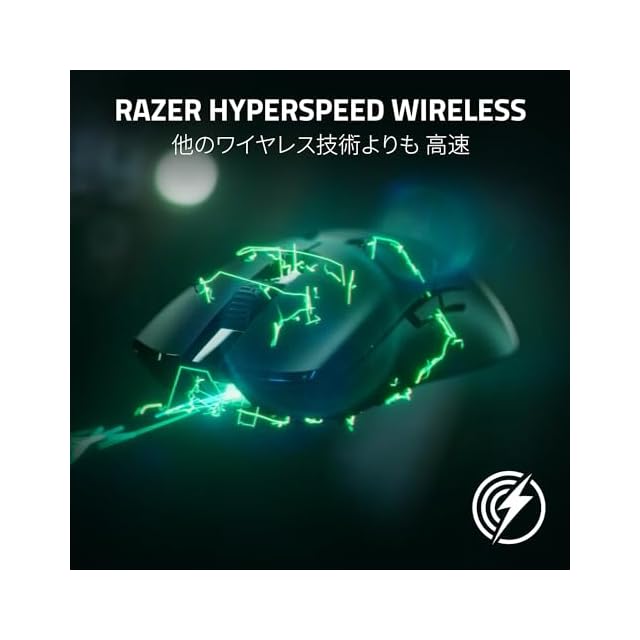 【Razer HyperSpeed Wireless】他のワイヤレス技術より25%高速なワイヤレス接続で、ノイズの多いワイヤレス環境でもスムーズで安定し、高性能かつ低遅延の対戦プレイを楽しむことができます。