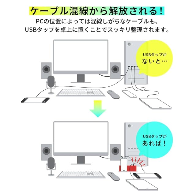 デスク周りがスッキリ!Pixio AC&USB TAP COMPACTは、複数のデジタルデバイスを一括チャージできる充電ステーションです。ケーブルでごちゃつきがちなデスク周りをスッキリ、使いやすく、スタイリッシュに。