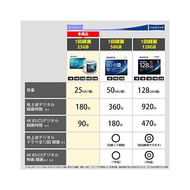 商品名:ソニー ブルーレイディスク BD-R 25GB (1枚あたり地デジ約3時間) 1回録画用 50枚入り 4倍速ダビング対応 ケース無し 50BNR1VJPP4