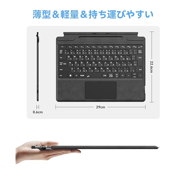 商品名:Omikamo Surface Pro キーボード Surface Pro 8/9/10/X/11対応 JIS標準日本語配列 Bluetooth5.3 サーフェスプロ キーボードトラックパッド付き ペン2収納可能 Typ-C充電式 カバー兼用 薄型 分離使用可 軽量 日本語取扱説明書