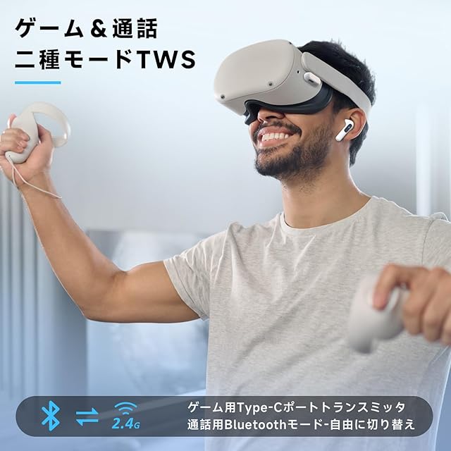 ゲーミングイヤホン ワイヤレス Bluetooth5.3 と 2.4G Type-C 2台同時無線接続/20ms未満の超低遅延/最大36時間再生/2つの内蔵ノイズキャンセリングマイク/3Dサラウンドサウンドゲーム&通話/LEDバッテリー ディスプレイ/急速充電/IPX4防水 Meta Quest 3/2, PS5/4, VR, Switch, PC, Phone対応