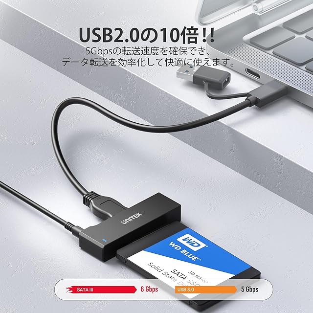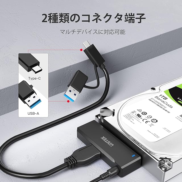 商品名:Unitek SATA to USB3.0(USB-A+USB-C) 変換ケーブル 2.5 3.5インチ HDD/SSD などのハードドライブとSATA 光学ドライブ に対応 SATAI/II/III 電源アダプタ(12V/2A電源付き) UASP対応 高速転送 最大18TB ファイルコピー ハードディスク復旧