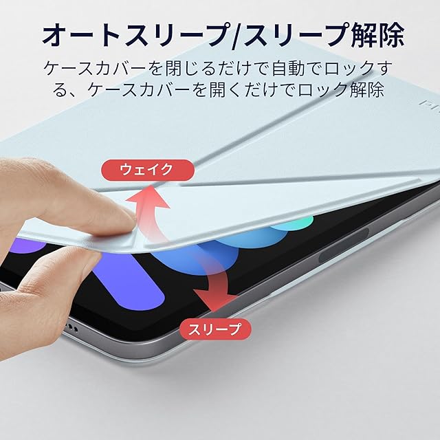 【横/縦置き回転、倒れない縦置き】横置きと縦置き両方を叶えるスタンド機能は使いやすくて便利です。三角形の抜群安定感により倒れなく使えます。折り紙のようにおることで角度は4つ選択でき、ネットサーフィンに動画鑑賞、勉強等の作業向けとスムーズに素早く切り替えられる。【対応機種】iPad mini 7(A17 Pro, 2024, 第7世代) ;iPad mini 6(2021, 第6世代) 。