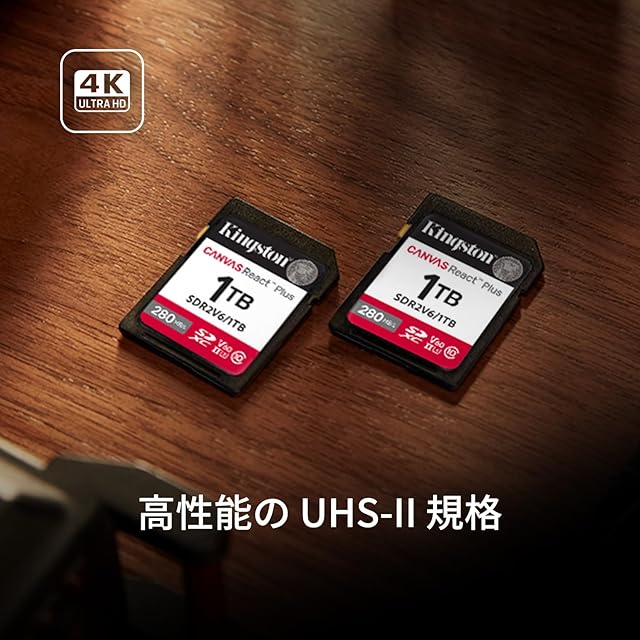 UHS-II 撮影の愛好家向けに設計された Kingston の Canvas React Plus V60 SD カードは、非常に優れたパフォーマンスを発揮し、UHS-I よりも高い毎秒ごとのフレーム数(fps)で 4K 撮影を行う標準の UHS-II カメラに理想的です。<br> <br> ■ 最大 280MB/秒までの転送速度を実現<br> ■ 高性能 UHS-II スピードクラス 3 (U3) とビデオスピードクラス 60 (V60) 規格により、信頼性の高い高解像度の写真やビデオ撮影が可能<br> ■ 最大 1TB までの大容量ストレージで、デジタルコンテンツライブラリを保存できる<br> ■ メーカーより製品寿命期間をご提供します<br>