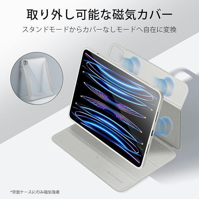 商品名:ESR iPad Pro 11インチ ケース 第4/3/2/1世代(2022/2021/ 2020/2018)専用 Pencilホルダー付き 取り外し可能マグネットカバー 縦置き/横置きスタンド Pencil 2対応 Rebound 360シリーズ ホワイト