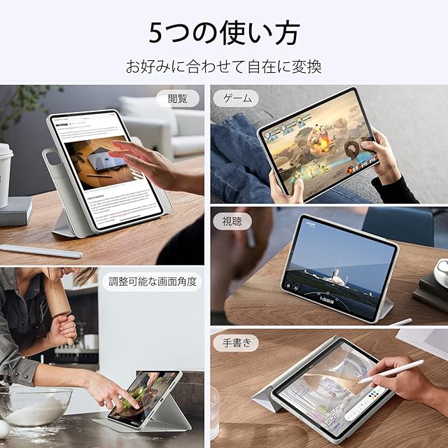 【複数使用モード】: 縦向きと横向きの調整が可能な6つのユニークな使用モードがあり、iPadを好きなように変身させることができます